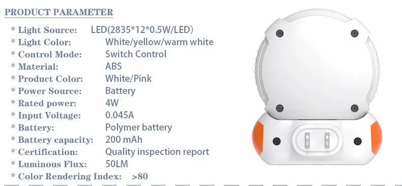 | Battery capacity | 200mAh | Light source | LED |
