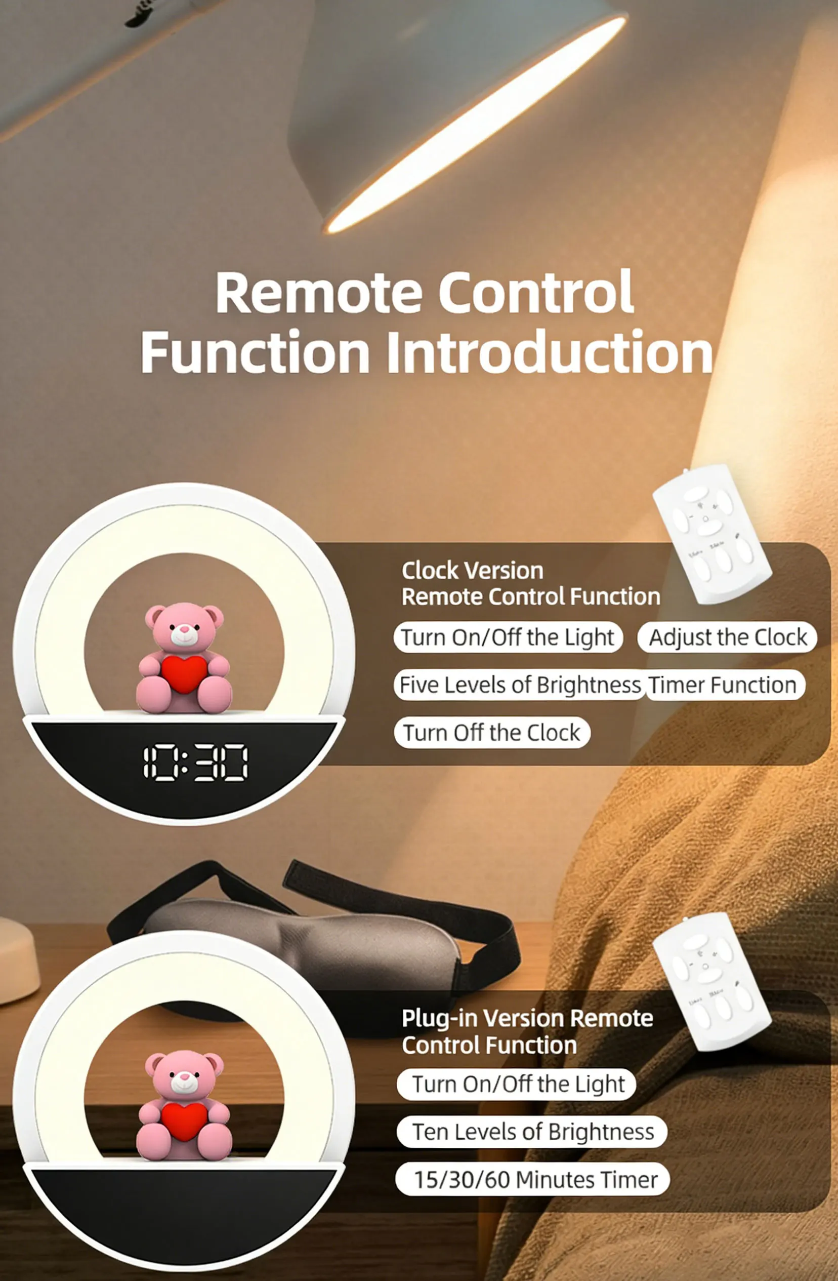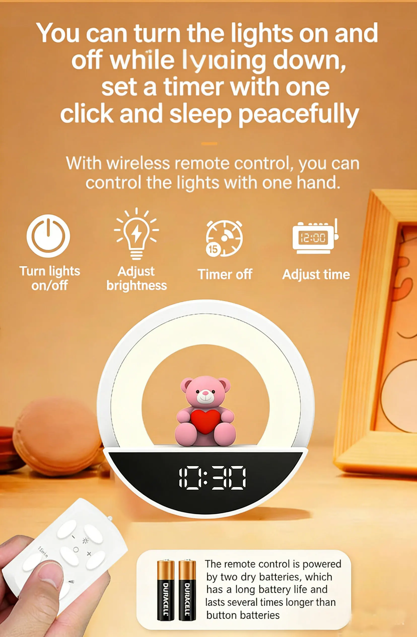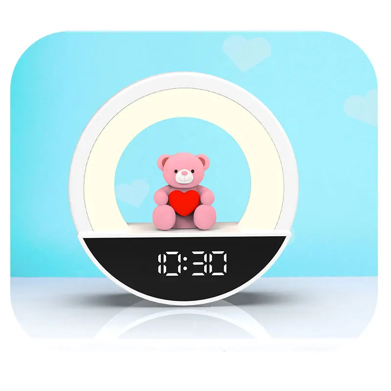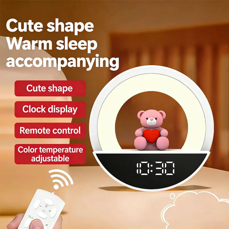 The core "appearance value" and design highlight feature a soothing and cute shape with a circular minimalist design. featuring a pink bear figurine holding a red heart in the center. Soft and adorable. it instantly touches the hearts of young girls. It serves as both a night light and a tabletop decoration. suitable for various settings such as bedrooms. children's rooms. and desks.